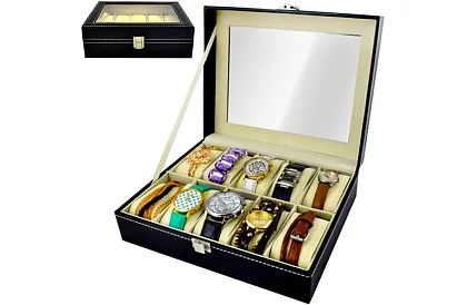 Elegáns megoldás a biztonságos tárolásra, átlátható szervezésre és stílusos bemutatásra órák és ékszerek számára. A védő párnázás, praktikus elrendezés és reprezentatív megjelenés biztosítja a kényelmes napi használatot és a kiegészítők hosszú távú védelmét. Alkalmas otthoni használatra és ízléses ajándéknak.