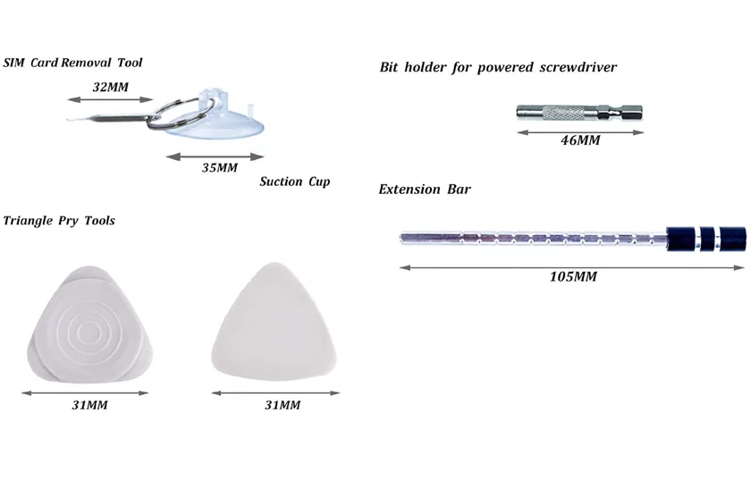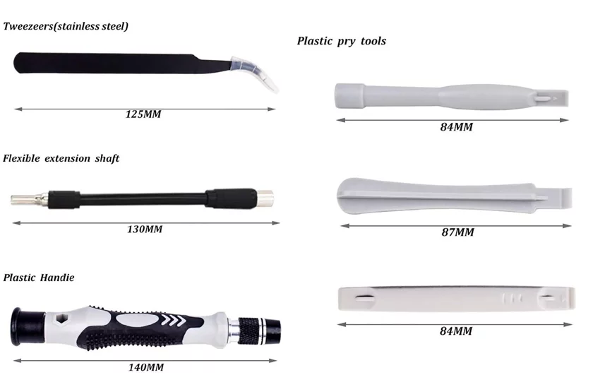 A készletben mindenféle bővítményt és a szükséges eszközöket megtalál nemcsak a mobiltelefonok javításához.