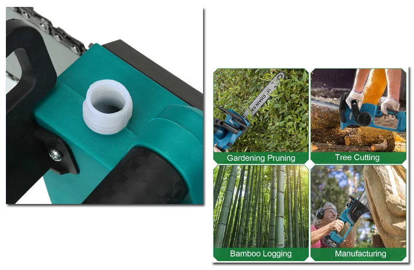 Az akkumulátoros láncfűrész használata kényelmes, csendes és a biztonsági kapcsolónak köszönhetően biztonságos is. A fűrész a saját olajtartályának köszönhetően automatikus lánckenéssel rendelkezik. A fűrészen kívül a csomag tartalmaz egy vezetőlemezt - 12 hüvelyk (kb. 30,4 cm), egy láncot, az összeszereléshez szükséges szerszámot és 2 akkumulátort.