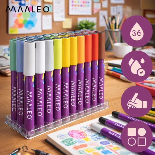 Intenzív akril festékek lehetővé teszik kreatív projektek létrehozását professzionális eredménnyel. Vízálló pigmenttinta élénk és tartós színeket biztosít, amelyek különböző felületeken használhatók, papírtól üvegig, kerámiától fáig, textíliáig. Gyorsan száradó filcek támogatják a színek rétegezését, pontos vonalakat és az ajándékok vagy dekorációk egyszerű személyre szabását, ideális kezdőknek és haladóknak egyaránt.