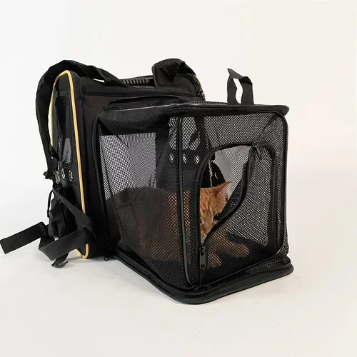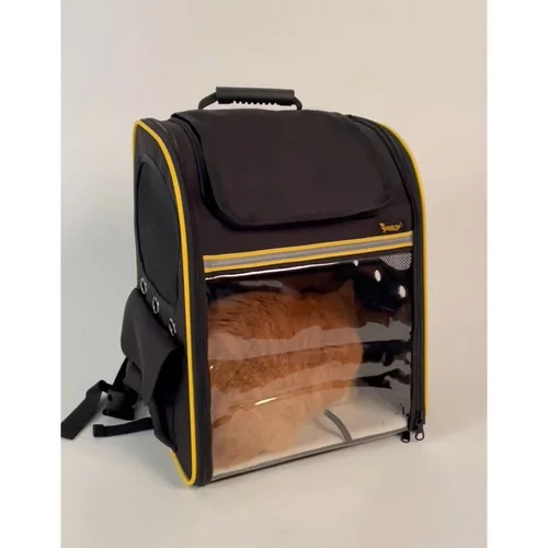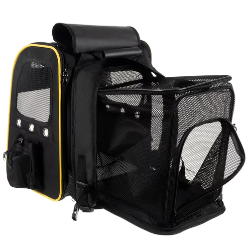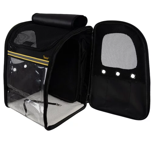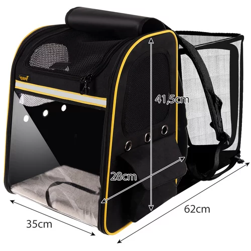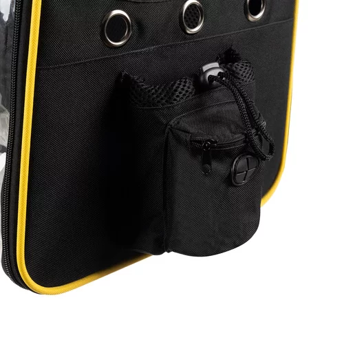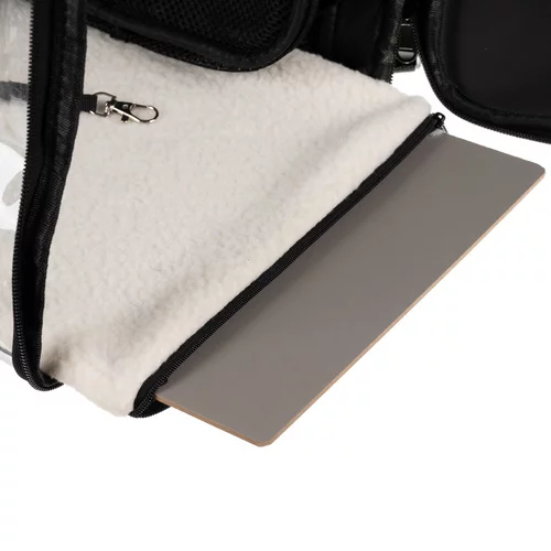Praktikus és biztonságos hátizsák lehetővé teszi a kutya, macska vagy nyúl kényelmes szállítását. Megfelelő szellőzést biztosít a hálós ablakoknak és az átlátszó elülső fóliának köszönhetően, hogy a kisállat láthassa a környezetét. A megerősített szerkezet és a puha bélés stabilitást és kényelmet nyújt az utazás során, míg az oldalsó zsebek helyet kínálnak az italnak, uzsonnának vagy apró kiegészítőknek. Ideális társ kirándulásokra és közös kalandokra.