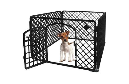Praktikus és biztonságos tér a háziállatai számára. A kerítés biztonságos helyet biztosít kutyák, kölykök és más kis állatok számára, ahol pihenhetnek vagy játszhatnak anélkül, hogy tönkretennék a környezetet. A szilárd szerkezetnek és a biztonságosan rögzített ajtóknak köszönhetően ideális minden tenyésztő számára.