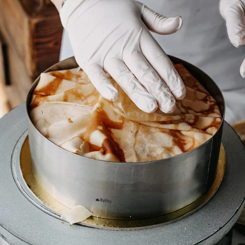 Lehetővé teszi a kényelmes és precíz torták és péksütemények elkészítését. Köszönhetően a állítható keretnek, magas peremének és tartós rozsdamentes acéljának alkalmas többrétegű torták, hideg desszertek és réteges ételek készítésére. Könnyű tisztítás és stabil szerkezet biztosítja a hosszú távú és biztonságos használatot.
