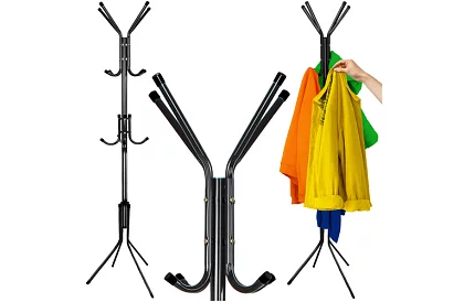 Elegáns és praktikus megoldás a ruhák átlátható tárolására bármilyen belső térben. Stabil szerkezet három szintű akasztással lehetővé teszi a kabátok, dzsekik, sálak és táskák kényelmes elhelyezését anélkül, hogy fúrni kellene a falba. A szabadon álló kivitel biztosítja a könnyű áthelyezhetőséget, és a kompakt dizájn kisebb helyiségekbe is illik, ahol segít fenntartani a rendet és a stílust egyaránt.