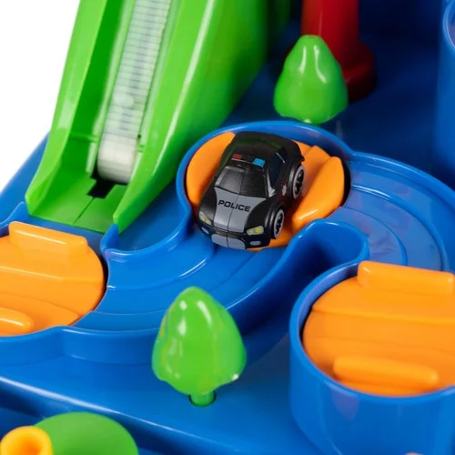 Izgalmas játék, amely órákon át szórakozást és kalandot kínál. A gyermek a pályán való áthaladás során elsajátítja a kézügyességet, logikai gondolkodást és a akadályok megoldásának képességét. A mozgó elemek, mint a fogaskerekek és a lehúzható híd, feszültséget és szórakozást adnak a játékhoz .