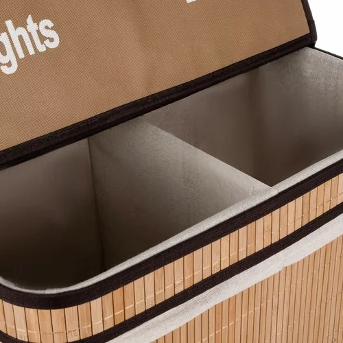 Tartsd rendben a háztartást stílusosan és fáradság nélkül. Ez a praktikus kétrekeszes szennyeskosár lehetővé teszi, hogy egyszerűen válogasd a ruhákat már a tárolás során, és egyben természetes és elegáns megjelenést kölcsönöz a fürdőszobádnak vagy a mosókonyhádnak. A bambusz és a textilbélés kombinációjának köszönhetően tartós, higiénikus és egyben dizájnos megoldást kapsz a mindennapi használatra.
