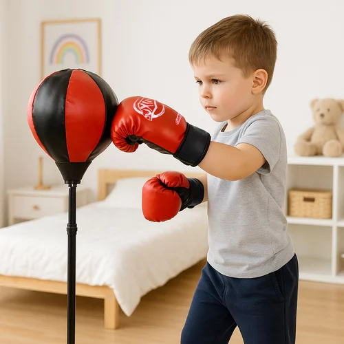 A bokszoló szett támogatja a fizikai aktivitást, reflexeket és a motoros koordinációt a gyermek számára, lehetővé teszi a biztonságos energiafelszabadítást és fejleszti a önbizalmat sportos szórakozás révén. Állítható magassága lehetővé teszi, hogy a gyermek növekedésével együtt fejlődjön, így a játékot hároméves és idősebb gyermekek is használhatják, és a gumilabda dinamikus edzést kínál a rugónak köszönhetően, amely minden ütés után visszatér függőleges helyzetbe.