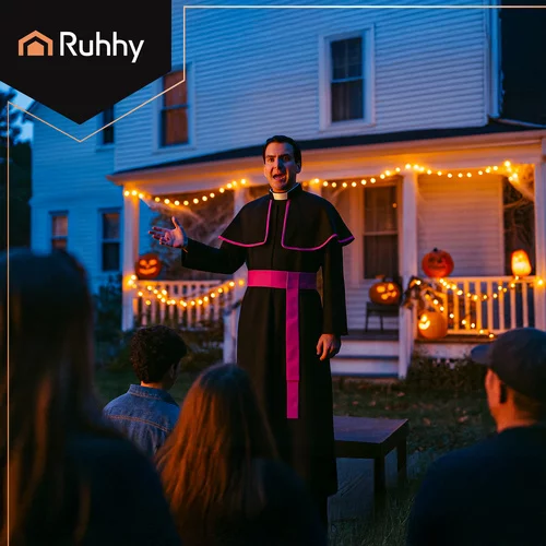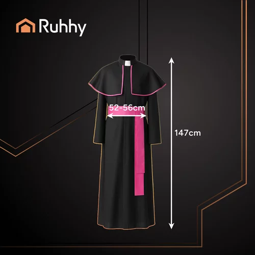 A klasszikus püspöki jelmez az autentikus lelki megjelenést kényelmes viselettel ötvözi. A fekete sutana, a galléros köpeny és a lila sál kifejező stílust biztosít, amely alkalmas Halloweenra, jelmezbálokra, cosplayra és színházi előadásokra. A laza XL/XXL szabás kényelmet és könnyű átöltözést biztosít. A teljes 3 az 1-ben jelmez azonnali használatra kész, és azonnal kiegészíti bármely eseményt kifejező karakterével.