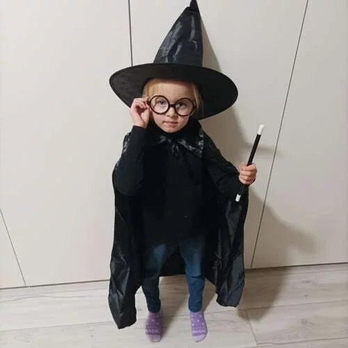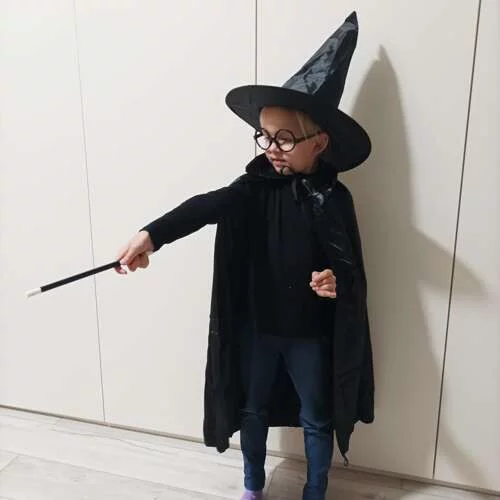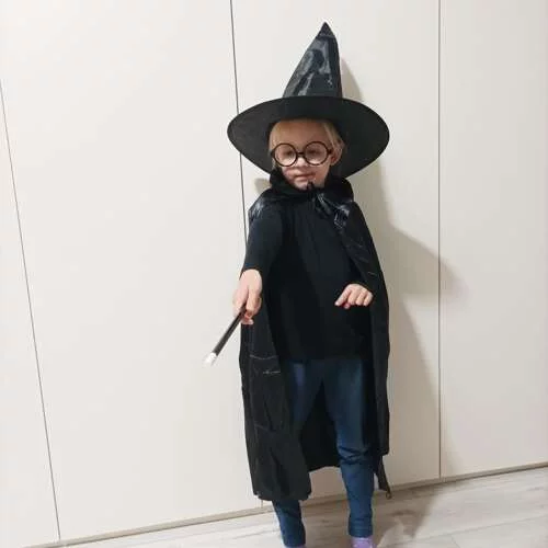 A varázsló jelmeze minden gyermeket kis varázslóvá változtat. A fekete köpeny titokzatosságot és eleganciát kölcsönöz, a magas kalap meglepő hatást kelt, míg a varázspálca és a kerek szemüveg tökéletesen kiegészíti a varázslatos alakot. Ideális jelmezbálokhoz, színházi előadásokhoz vagy otthoni játékhoz, ahol a fantázia határtalan.