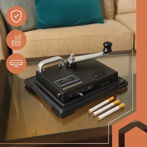 Szeretné gyorsan, pontosan és felesleges pazarlás nélkül saját cigarettát készíteni? Ez a dugattyús gép lehetővé teszi a töltőcsövek egyenletes megtöltését néhány másodperc alatt, minimális erőfeszítéssel. A szilárd konstrukciónak és stabil alapnak köszönhetően megbízható teljesítményt kap minden használat során – ideális otthoni használatra és rendszeres töltéshez.