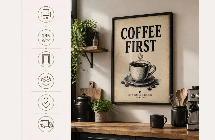 • Dizájn – Stílusos kávémotívum modern és klasszikus belső térhez