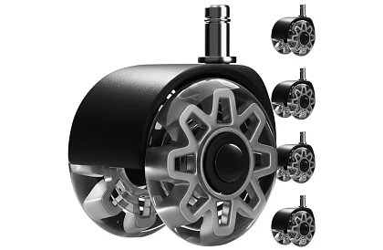Csendes mozgás nyikorgás és karcolások nélkül a padlón. Minőségi kerekek acélcsapágyakkal és puha PU felülettel biztosítják a sima közlekedést parkettán, járólapon és szőnyegeken védőpadló nélkül. A megerősített szerkezet magas ellenállást és hosszú élettartamot kínál, míg a univerzális talp 11 × 22 mm lehetővé teszi a gyors cserét szerszám használata nélkül. Csak ki kell venni a régi kerekeket, és egy percen belül fel lehet tenni az újat.