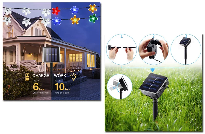 Klasszikus napelemes LED-láncot napelem táplálja. Nappal tölt, éjjel magától kivilágít a lámpa. A láncot tessék csak megfelelően elhelyezni, a fantáziádnak nincs határa, a kertben, tornácon, pergolán, kapun, kerítésen feldíszíthet bármilyen fát, és nem kell aggódni az áramellátás miatt. Mivel a termék napközben töltődik, a vezérlődobozban lévő újratölthető akkumulátor és a fényerő-szabályozó érzékelő éjszaka automatikusan fény üzemmódba kapcsol.