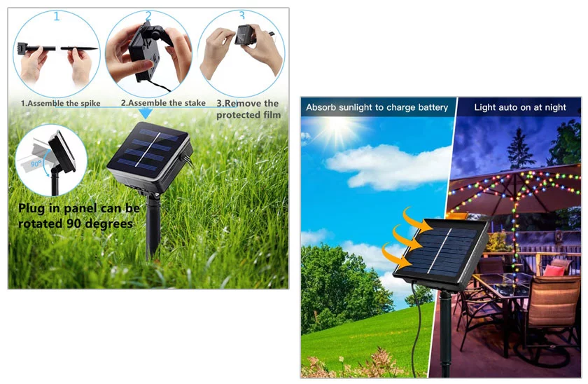 Klasszikus napelemes LED-láncot napelem táplálja. Nappal tölt, éjjel magától kivilágít a lámpa. A láncot tessék csak megfelelően elhelyezni, a fantáziádnak nincs határa, a kertben, tornácon, pergolán, kapun, kerítésen feldíszíthet bármilyen fát, és nem kell aggódni az áramellátás miatt. Mivel a termék napközben töltődik, a vezérlődobozban lévő újratölthető akkumulátor és a fényerő-szabályozó érzékelő éjszaka automatikusan fény üzemmódba kapcsol.