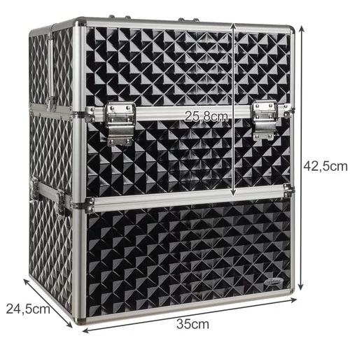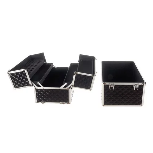 A bőrönd nagyon nagy helyet kínál minden kozmetikum és egyéb szükséges dolog rendezésére. A két részes konstrukciónak köszönhetően minden termék a helyén marad, és kényelmes tárolást és szállítást tesz lehetővé, beleértve az UV/LED lámpát vagy a körömlakkokat. A praktikus fül, polc és lakk szervező maximális rendet és átláthatóságot biztosít.