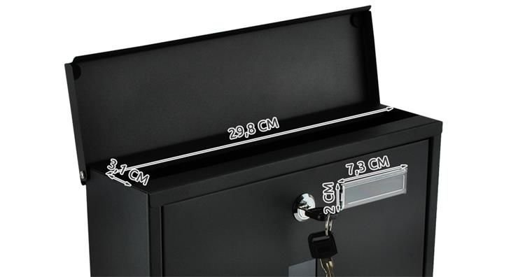 A levé postaláda horganyzott acélból készült, így rozsdamentes és sok szezont kibír. Fedéllel van ellátva, amely védi a levelezést az időjárási hatásoktól, és egy csővel a újságok és szórólapok számára. A készlet tartalmazza a szerelési tüskéket és alátéteket a falra való könnyű rögzítéshez, valamint két kulcsot a biztonságos záráshoz.