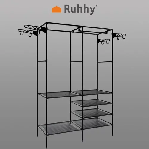 Gyakorlati megoldást keres a ruhák és egyéb textíliák tárolására? Ez a dupla állvány elegendő helyet biztosít, miközben rendezetten tartja a dolgaidat. Mobilitásának köszönhetően könnyen áthelyezheti bárhová, és könnyű szerkezete, valamint az egyszerű összeszerelés gyors telepítést garantál szerszámok nélkül. Ideális bármely helyiségbe, helyet takarít meg és megkönnyíti a ruhák és kiegészítők rendszerezését.