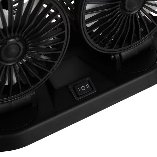 A dupla autós ventilátor kényelmes és friss utazást biztosít a vezető és az utas számára. Két fejének köszönhetően, amelyek 360°-ban elforgathatók és kétszintű sebességszabályozással rendelkeznek, a levegőáramot pontosan oda irányíthatjuk, ahol szükség van rá. Az önállóan állítható fejek lehetővé teszik, hogy minden utas a saját igényei szerint állítsa be a levegő áramlását. A ventilátor 12V-os szivargyújtó aljzatról működik, így a legtöbb személygépkocsival és haszongépjárművel kompatibilis.