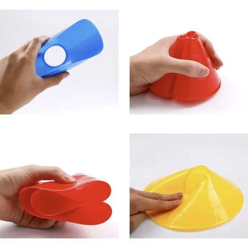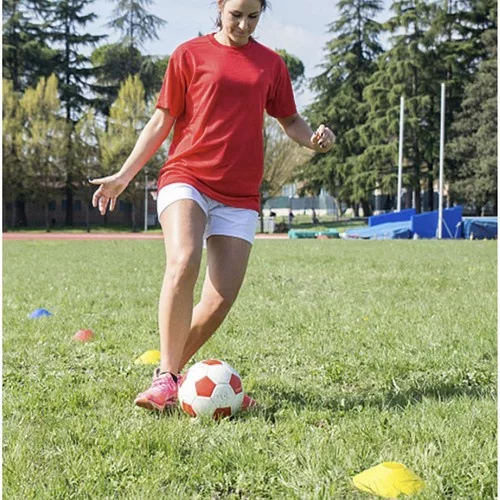 A készlet lehetővé teszi a hatékony és biztonságos ügyességi, sebességi és labdakontroll edzést. Intenzív színek biztosítják a jó láthatóságot és biztonságot, míg a tartós és rugalmas anyag ellenáll a gyakori használatnak különböző felületeken. Praktikus állvány és táska megkönnyítik a szállítást és tárolást, így minden kúp mindig kéznél van.