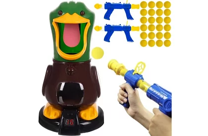 Szórakoztató arkád játék gyerekeknek, amely fejleszti a kéz-szem koordinációt és a versenyszellemet. A játékosok hablabdákkal céloznak a kacsára, amely találatkor quack-ol és pontokat ad a LCD számlálón. A két fegyverből álló készletnek köszönhetően a gyerekek élvezhetik a lövész versenyeket, játszhatnak párban és tanulhatnak meg veszíteni és nyerni.