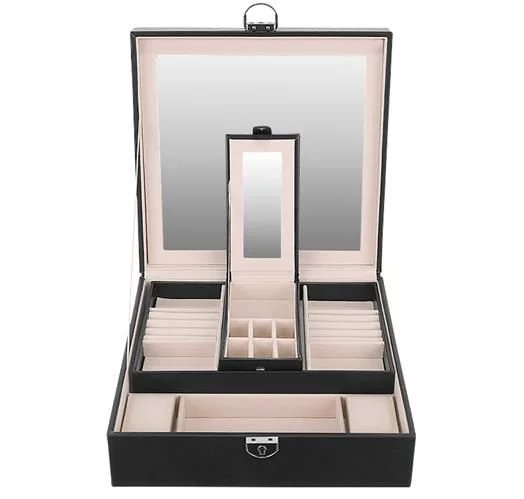 Praktikus tükör – az ékszerdoboz belsejében egy kihajtható tükör található, amely megkönnyíti az ékszerek felvételét és a smink elkészítését. A tükör alatt egy kis rekesz található a legértékesebb ékszerei számára.