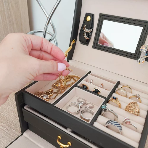 • Biztonságos az ékszerek számára: puha rekeszek védik a finom és értékes tárgyakat a karcolásoktól