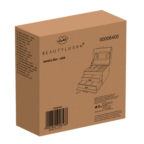 • Tágas: 20 rekesz, 3 fiók és hengeralakú fülkék az ékszerek tökéletes rendezéséhez