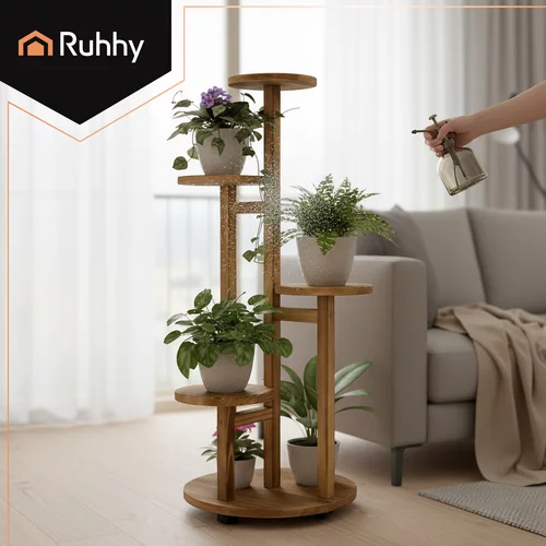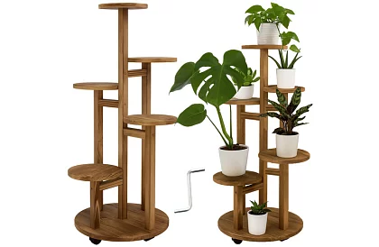 Stílusos és praktikus virágtartó fenyőfából segít rendezni a növényeket áttekinthetően és elegánsan. A 6 szinttel akár 7 virágcserép is elfér rajta, és lehetővé teszi, hogy vonzó zöld kompozíciót hozzon létre kisebb helyen is. Ideális belső térbe, erkélyre és teraszra. A praktikus, fékezhető kerekek könnyű áthelyezést biztosítanak erőfeszítés és padlókarcolás nélkül.