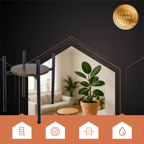 Stílusos virágállvány loft stílusban praktikus és esztétikus megoldást kínál a növények látványos kiállítására a nappaliban, konyhában, hálószobában vagy erkélyen. Fém konstrukció garantálja a stabilitást és tartósságot, a minimalista dizájn modern és klasszikus belső terekhez egyaránt illik. Kiegyenlítő védőtalpak védik a padlót a karcolásoktól, és lehetővé teszik a állvány tökéletes kiegyenlítését egyenetlen felületen is.