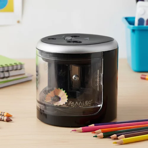A kompakt elektromos hegyező két méretű nyílással megkönnyíti a mindennapi munkát otthon, iskolában és irodában. A gyors és pontos élezés, amely nem törik el a hegy, időt és ceruzát takarít meg, míg az átlátszó tartály tisztán tartja a munkaterületet. Alkalmas a normál iskolai és erősebb művészi ceruzákhoz, és a cserélhető pengék hosszú élettartamot kínálnak.