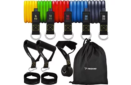 A készlet lehetővé teszi a hatékony erő-, állóképesség- és crossfit-edzést. Az ellenálló gumiszalagok különböző terheléssel támogatják az egyes izomcsoportok fejlődését és biztosítják a test megfelelő működését. A praktikus felszerelésnek és a különböző rögzítési lehetőségeknek köszönhetően otthon, a szabadban vagy fitneszteremben is lehet edzeni. A gumiszalagok rugalmassága és szilárdsága biztonságos és kényelmes edzést biztosít a kezdők és haladók számára egyaránt.