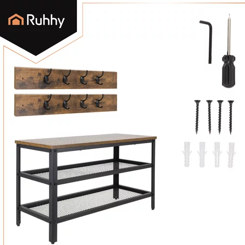 Praktikus megoldás a rend és helytakarékosság érdekében a előszobában. Biztosít egy tágas cipőtartót, ruhafogót és két polcot egy dizájnban, ami lehetővé teszi, hogy mindent kéznél tartsunk. Stabil szerkezet porfestett acélból és elegáns MDF lapból modern és otthonos megjelenést kölcsönöz a belső térnek, míg az egyszerű összeszerelés gyors és kényelmes összeállítást biztosít.