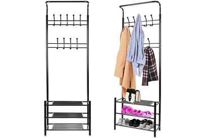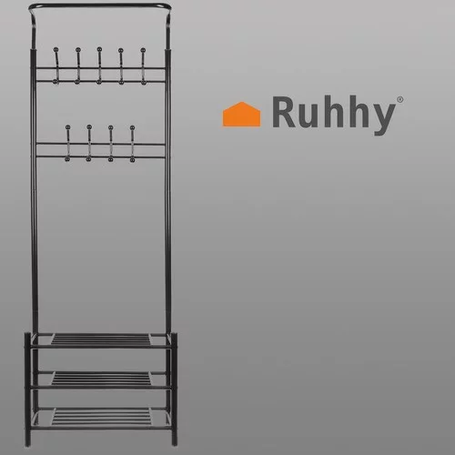 Praktikus és tágas kiegészítő az előszobájába, amely a cipőtartót ruhafogasra kombinálja. Lehetővé teszi, hogy rendben tartsa a dolgokat, kényelmesen tárolja a kabátokat, dzsekiket, cipőket és kiegészítőket, és egyben nem foglal túl sok helyet. A szilárd kivitelezésnek köszönhetően stabil marad nagyobb mennyiségű ruházat mellett is.