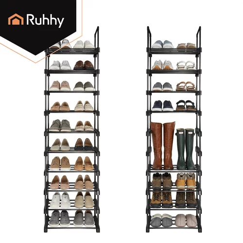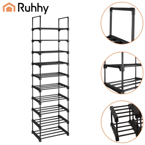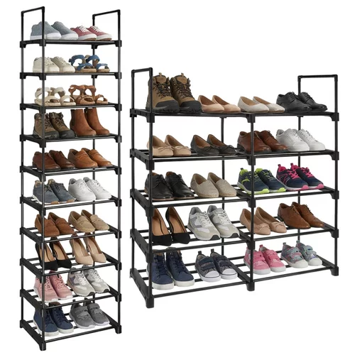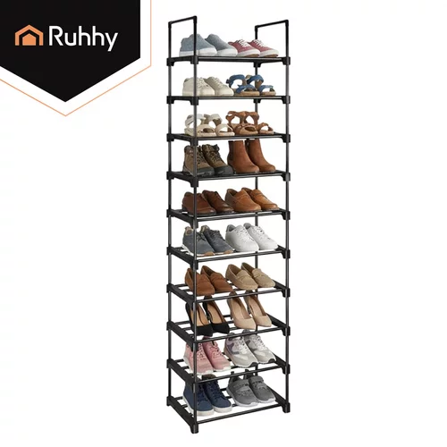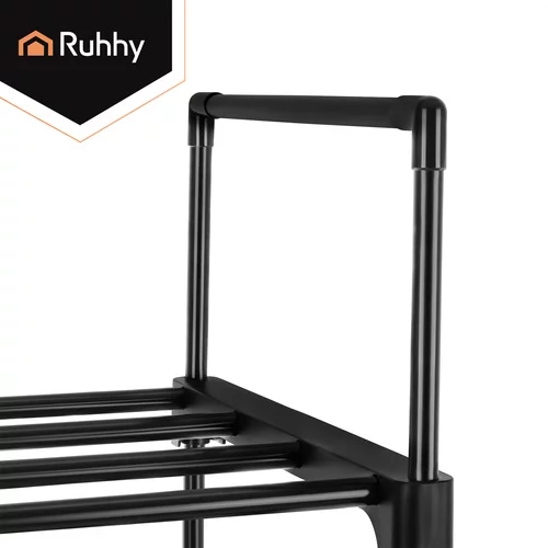 A funkcionális Ruhhy cipőtartó praktikus megoldást kínál a lábbelik rendezett tárolására kicsi és nagyobb helyiségekben. A keskeny és magas dizájn lehetővé teszi, hogy akár 20 pár cipőt is elhelyezzen anélkül, hogy felesleges helyet foglalna el a folyosón, öltözőben vagy a lépcsőházban. A masszív fémváz biztosítja a stabilitást és a hosszú élettartamot, míg a nyitott szerkezet elősegíti a légáramlást és a lábbelik gyorsabb száradását. A modern fekete kivitel elegáns megjelenést kölcsönöz, és könnyen illeszkedik bármilyen belső térbe.