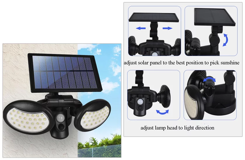 A napelemes csatlakozásnak köszönhetően a mozgásérzékelővel ellátott LED-es napelemes lámpatest olyan helyekre is alkalmas, ahol nincs lehetőség áramellátásra, vagy ha úgy dönt, hogy a már kész homlokzatot megvilágítja anélkül, hogy új vezetékeket kellene ásni. Alkalmas például bekötőutak, házak homlokzatának és egyéb kültéri területek megvilágítására. A világítást úgy kell elhelyezni, hogy a napelem elegendő napfényt legyen képes felfogni az akkumulátor megfelelő feltöltéséhez.