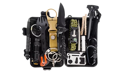 A praktikus túlélő készlet teljes felszerelést kínál nehéz helyzetekhez és szabadtéri kalandokhoz. A tartós vízálló tok segítségével minden fontos dolog egy helyen és készen áll a használatra. Tartalmaz tűzgyújtó, tájékozódási, világítási, fűtési, javítási és alapvető táborozási eszközöket. Ideális túrázáshoz, túléléshez, kempingezéshez, valamint eredeti ajándéknak mindenkinek, aki szereti az expedíciókat és a természetben való tartózkodást. Ez a kiterjedt készlet segít biztosítani a túléléshez szükséges feltételeket – fűtés, világítás, étel előkészítési lehetőség és alapvető védelem.