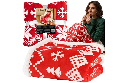 • Karácsonyi színekben és mintákban készült takaró