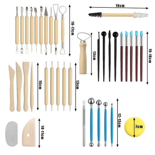 Fedezze fel a szobrászat és modellezés kreatív világát egy professzionális készlettel, amely 40 elemet tartalmaz egy praktikus hengertokban. A készlet azonnali használatra kész, és minden szükségeset biztosít a modellezéshez, faragáshoz, simításhoz és kerámia díszítéshez. Ideális diákok, amatőrök és profi művészek számára, akik szeretnék művüket tökéletessé tenni.