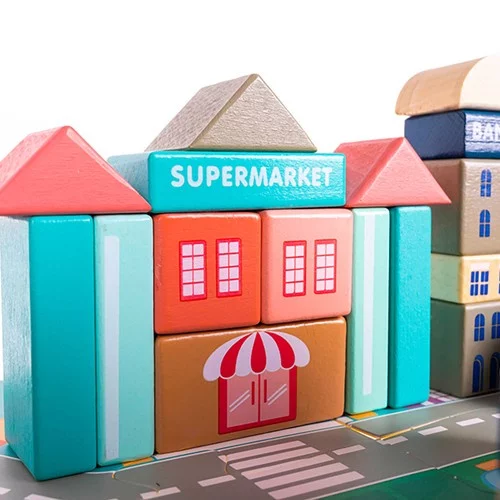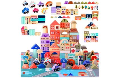 Építsd fel a saját fantáziával és kalanddal teli városodat! A fa építőkockák lehetővé teszik a gyerekek számára, hogy a saját elképzeléseik szerint építsenek várost – a banktól, a iskolán át, egészen a kórházig és a mentőautókig. A játék fejleszti a kreativitást, a finommotorikát, a koordinációt és a logikai gondolkodást, és egyben rengeteg szórakozást kínál. A kockák minőségi fából készülnek, sima élekkel rendelkeznek, és nem toxikus festékekkel vannak bevonva, ami biztosítja a biztonságot játék közben.