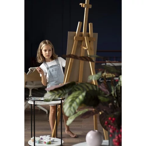 Minőségi faállvány, amely stabil és erős támasztékot biztosít a vásznak és festőlapok számára, ideális minden szintű művész számára. Az állítható magasság és dőlésszög lehetővé teszi a kényelmes munkát és a precíz megfigyelést különböző szögekből, míg a hajtogatható szerkezet biztosítja a könnyű szállítást és tárolást.