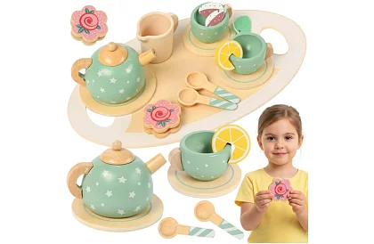 Varázslatos teás díszítés tele fantáziával és a játék örömével. A fa teáskészlet lehetővé teszi a gyerekek számára, hogy kis házigazdák szerepét vegyék át, fejleszti a kreativitást, a szociális készségeket és a finommotorikát. A természetes anyagok, sima élek és biztonságos színek nyugalmat hoznak a szülőknek és hosszú órák szórakozást a gyerekeknek.