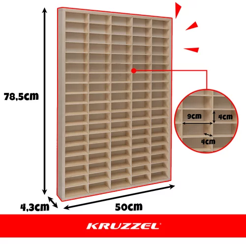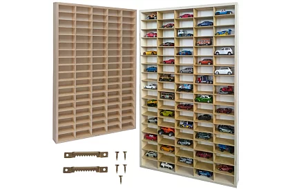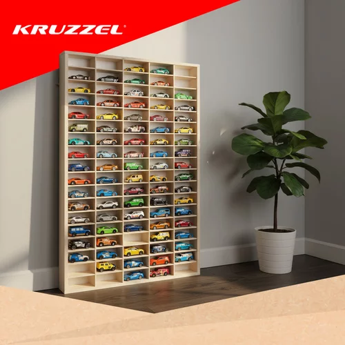 A fából készült polc 90 rekesszel ideális megoldás a gyerekautók és kisebb játékok tárolására. Ennek köszönhetően a gyerekek könnyen megtalálják minden modelljüket, és közben megtanulják, hogyan tartsák rendben a dolgokat. A polc emellett dekoratív kiegészítője a gyerekszobának, és az igényeik szerint alakítható.