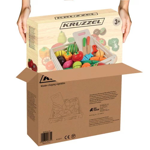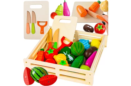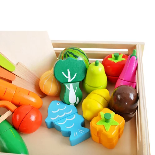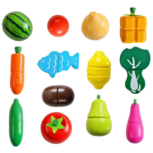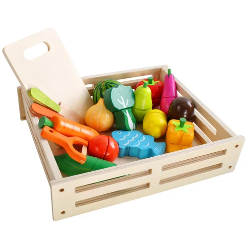 A színes fa gyümölcs- és zöldségkészlet szórakoztató főzési, kereskedelmi vagy háztartási játékot kínál a gyerekeknek. A valósághű kivitelezés, a szeletelés és az újra összekapcsolás lehetősége révén a gyerekek természetesen fejlesztik a motorikus készségeiket, a képzelőerejüket és a szociális készségeiket. A játék támogatja a kreativitást, a színek, formák és az alapvető számolás tanulását, és egyúttal értelmes szórakozást kínál hosszú órákra.