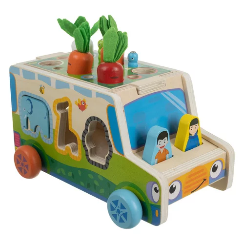 Montessori formákosó összekapcsolja játéknak és tanulásnak – a gyermek gyakorolja logikai gondolkodást, finommotorikát és megismeri a színeket és formákat. A 6 színes répával, állatfigurákkal, csúszó elemekkel és a kisautó belsejében található tárolóhellyel a képzelet, a precizitás és az önállóság fejlődik. A sima felületű természetes fa biztonságos és tartós játékot garantál.