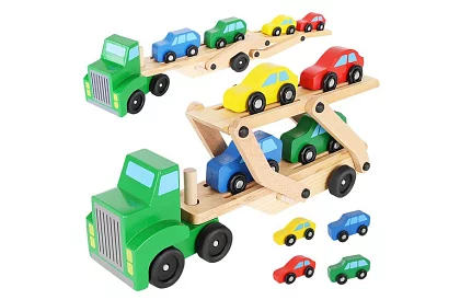• Fa kéttengelyes teherautó + 4 kisautó