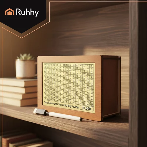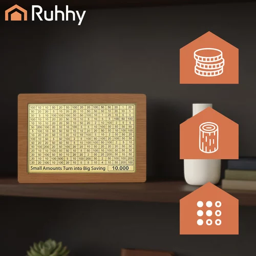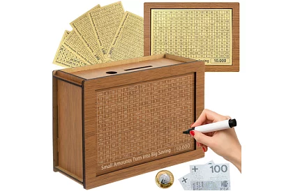 Az elülső oldalon egy áttekinthető táblázat a pénzösszegekről található, amelyeket fokozatosan kipipálhat, amíg el nem éri a kiválasztott pénzügyi célt. A megtakarítás így szórakoztató és motiváló kihívássá válik, amely segít kialakítani a pénzügyi szokásokat és az elért cél örömét. A 5 cserélhető kártyának köszönhetően különböző megtakarítási célokat lehet beállítani, így a persely gyermekek és felnőttek számára is alkalmas, és remekül szolgál eredeti ajándékként.