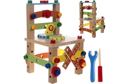 A fából készült érzékelő szék egy interaktív játék, amely ötvözi a szórakozást a tanulással és a gyermek fejlődésével. A szerelési lehetőségnek köszönhetően a gyermek sok szórakozást élvez, miközben a mechanika és a csapatmunka alapjait tanulja. A színes fogaskerekek hangokat produkálnak, stimulálják az érzékszervi integrációt és fejlesztik a kreativitást. A szék támogatja a motoros fejlődést, a képzeletet és a gyermek intellektuális képességeit, és biztonságos a természetes fa miatt, amely nem tartalmaz mesterséges anyagokat.