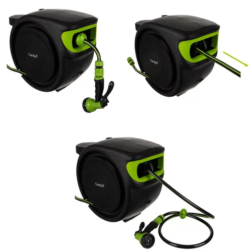 Az automatikus tömlőtekercs kényelmet és időmegtakarítást nyújt a kert öntözésekor. Az automatikus feltekerő mechanizmusnak köszönhetően a tömlő könnyen feltekerhető és letekerhető összegubancolódás nélkül, ami egyszerűsíti a munkát és energiát takarít meg. A 25 méteres hossz lehetővé teszi a teljes elérhetőséget az egész kertben, míg a állítható pisztoly több funkcióval rugalmasságot biztosít a különböző növények öntözésénél. A tartós és ellenálló anyag hosszú távú használatot garantál, és a 180°-ban elforgatható stabil fali tartó megkönnyíti a kezelést.