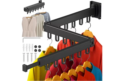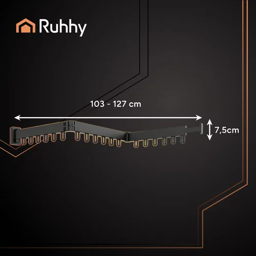 A praktikus szárító és ruhafogas ideális megoldás a kis terekhez. A falra szerelés után nem foglal helyet a padlón. A hajtható és kinyitható szerkezetnek köszönhetően a méret a ruhák mennyiségéhez igazítható, és a használat után a szárító könnyen összecsukható. A stabil szerkezet garantálja a stabilitást és a tartósságot még nagyobb terhelés mellett is. Stílusos és kényelmes kiegészítő a ruhák szárításához és tárolásához otthon, a fürdőszobában vagy az erkélyen.