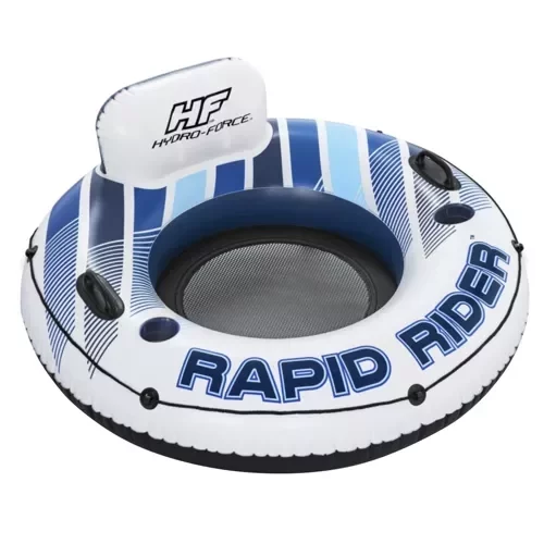 Élvezze a kényelmes pihenést a vízen egy nagy felfújható karikával háttámlával, amely ideális a medencében, a tónál és a nyaraláson való pihenéshez. A kényelmes háttámla, a hálós alj és a tágas kivitel magas kényelmet biztosít a napozás és az úszás során. Az italok tartóinak köszönhetően mindig kéznél lehet a frissítő, és a biztonsági kötél fogantyúkkal megkönnyíti a vízben való mozgást és szórakozást.